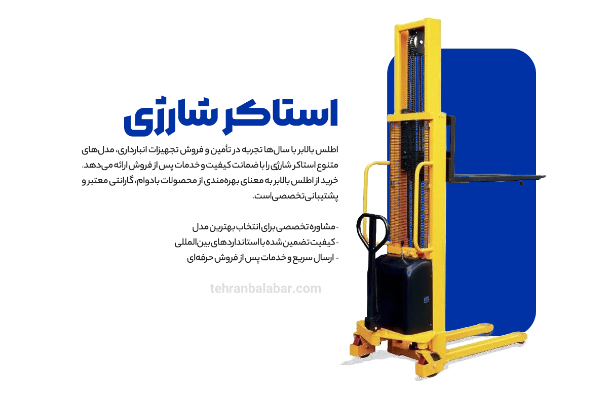 تهران بالا بر با پشتوانه سالها تجربه در زمینه تأمین و خدمات تجهیزات انبارداری، گزینهای مطمئن برای خرید استاکر شارژی است. ما محصولاتی بادوام را همراه با گارانتی رسمی و پشتیبانی فنی تخصصی ارائه میدهیم. استاکر شارژی تهران بالا بر همان انتخابی است که به دنبال آن بودید. این دستگاه با بهرهگیری از باتریهای پرظرفیت، کار حمل و نقل بار را به فرآیندی سریع، بیدردسر و مقرونبهصرفه تبدیل میکند.